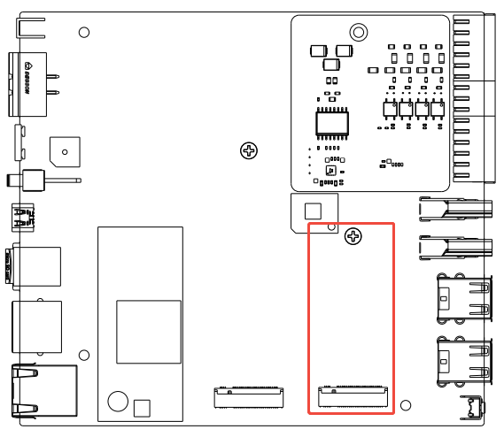 reComputer Industrial R2000は、PCIeスロット(J7)を使用して2280 NVMe SSDをサポートします。CM5のPCIeはgen2.0で、最大理論速度は5Gbpsであることに注意が必要です。Gen3.0以上のSSDを使用している場合、SSDの最大速度を達成できない可能性があります。テストの結果、SSDを搭載したreTerminal DMは最大書き込み速度230MB/s、最大読み取り速度370MB/sを達成できます。どのSSDが互換性があるか不明な場合は、以下のアクセサリリストに従って購入できます。