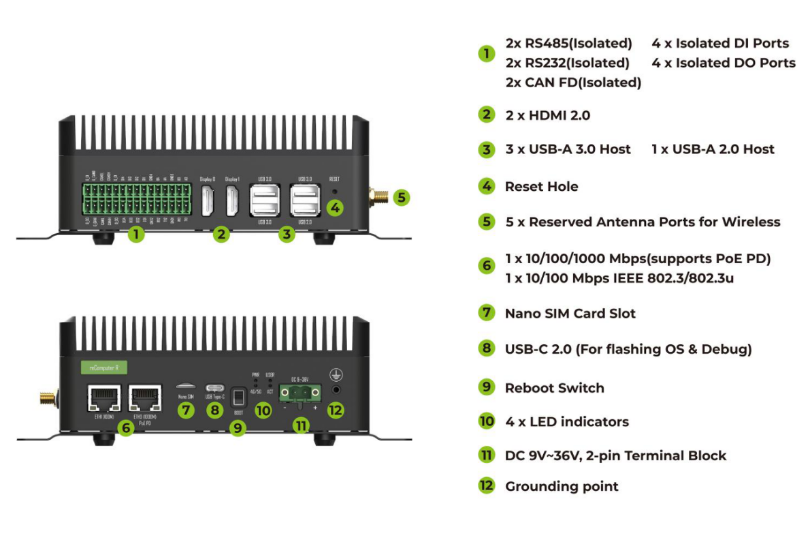 reComputer Industrial R21xxは、DCターミナルとPoEポートの2つの電源供給オプションをサポートしています。これにより電源供給の選択に柔軟性を提供し、様々な電源との簡単な統合を可能にします。