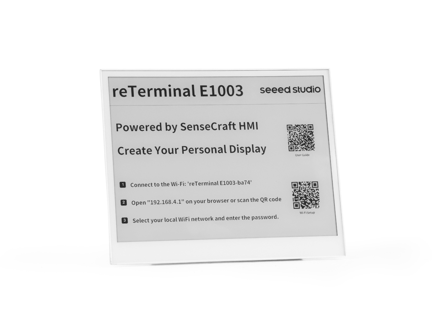 reTerminal E1003 は、16 階調グレースケールと 1404×1872 ピクセルの高解像度を備え、最長 6 か月のバッテリー寿命を実現する 10.3 インチオープンソースモノクロ ePaper ディスプレイです。タッチ操作は現在、SenseCraft HMI ファームウェア v1.1.2 でサポートされています。ESP32-S3 を搭載し、SenseCraft HMI のノーコード UI デザインをネイティブにサポートするほか、Arduino や PlatformIO によるさらなる開発も可能です。
