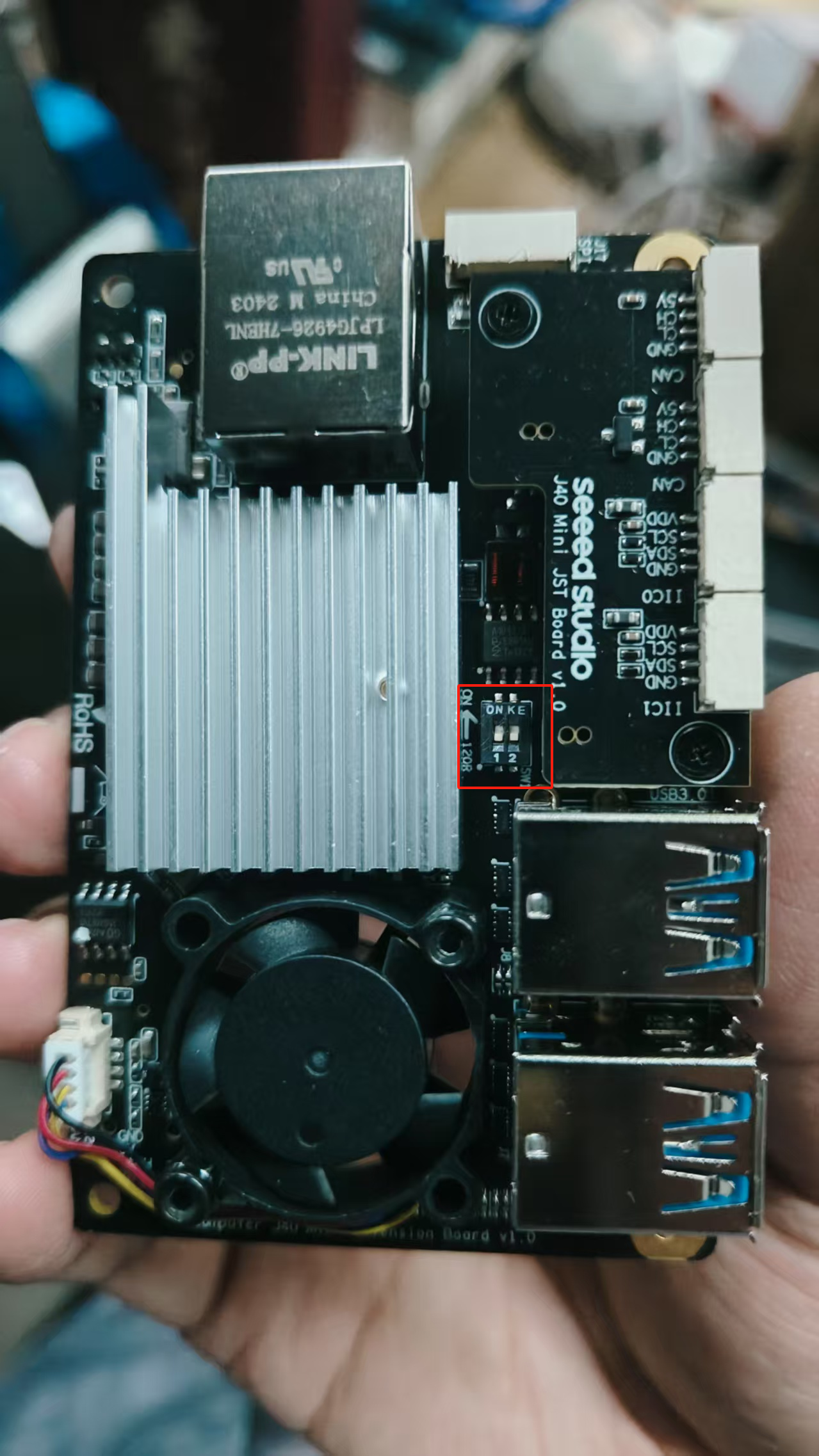 ステップ1: CAN0とCAN1を使用する前に、底面カバーを取り外し、2つの120Ω終端抵抗をON位置に設定してください。