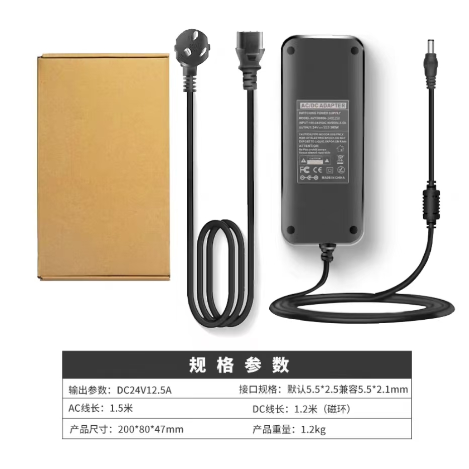 モーターが必要とする高電圧・大電流を考慮し、単一モーターを駆動するためにreComputer Miniに電力を供給する24V 300W電源アダプターの購入を推奨します。より多くのモーターを接続する必要がある場合は、要件に応じてより高出力の電源アダプターを購入できます。