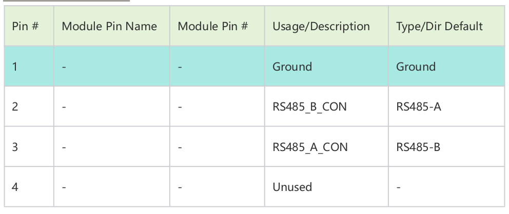 | RS485 | 1x RS-485 JST 4-Pin Connector(GH 1.25) | |