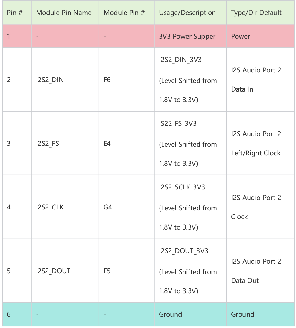 | I2S | 1x I2S JST 5-Pin Connector(GH 1.25) | |