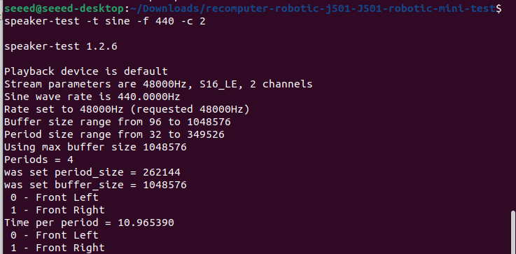 You can see the output in the terminal when the speaker is driven normally, as shown in the figure below.