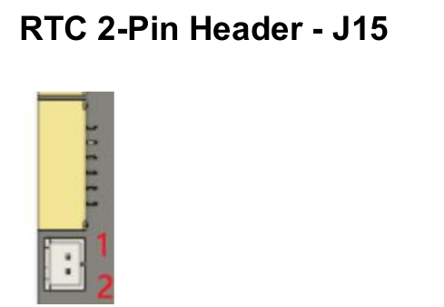 The Robotics J501-Mini provides a standard 2-pin header for RTC (3V).