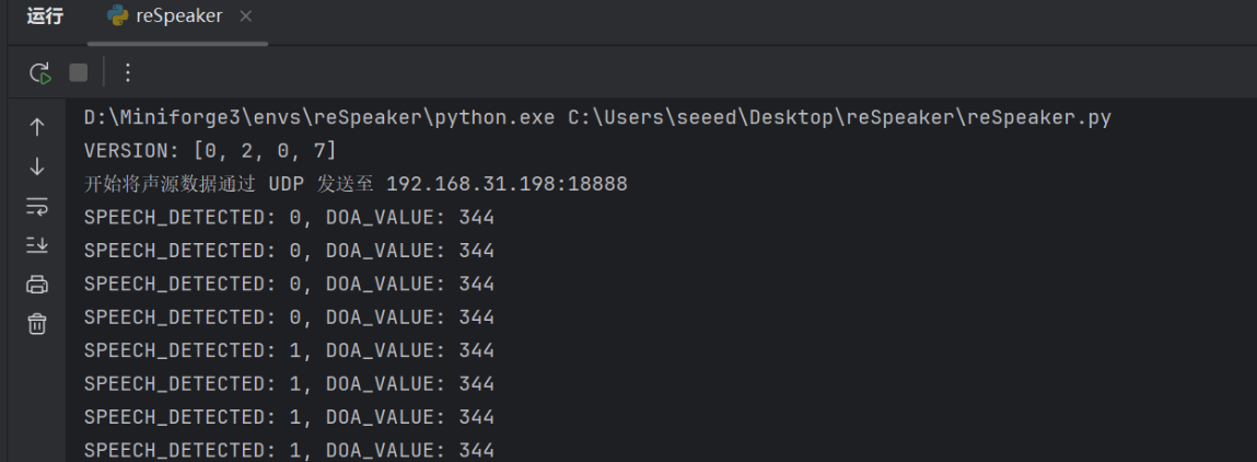 Speak into the microphone-you should see the Python terminal continuously print SPEECH_DETECTED:1, while the reCamera quickly turns to the angle of your voice.