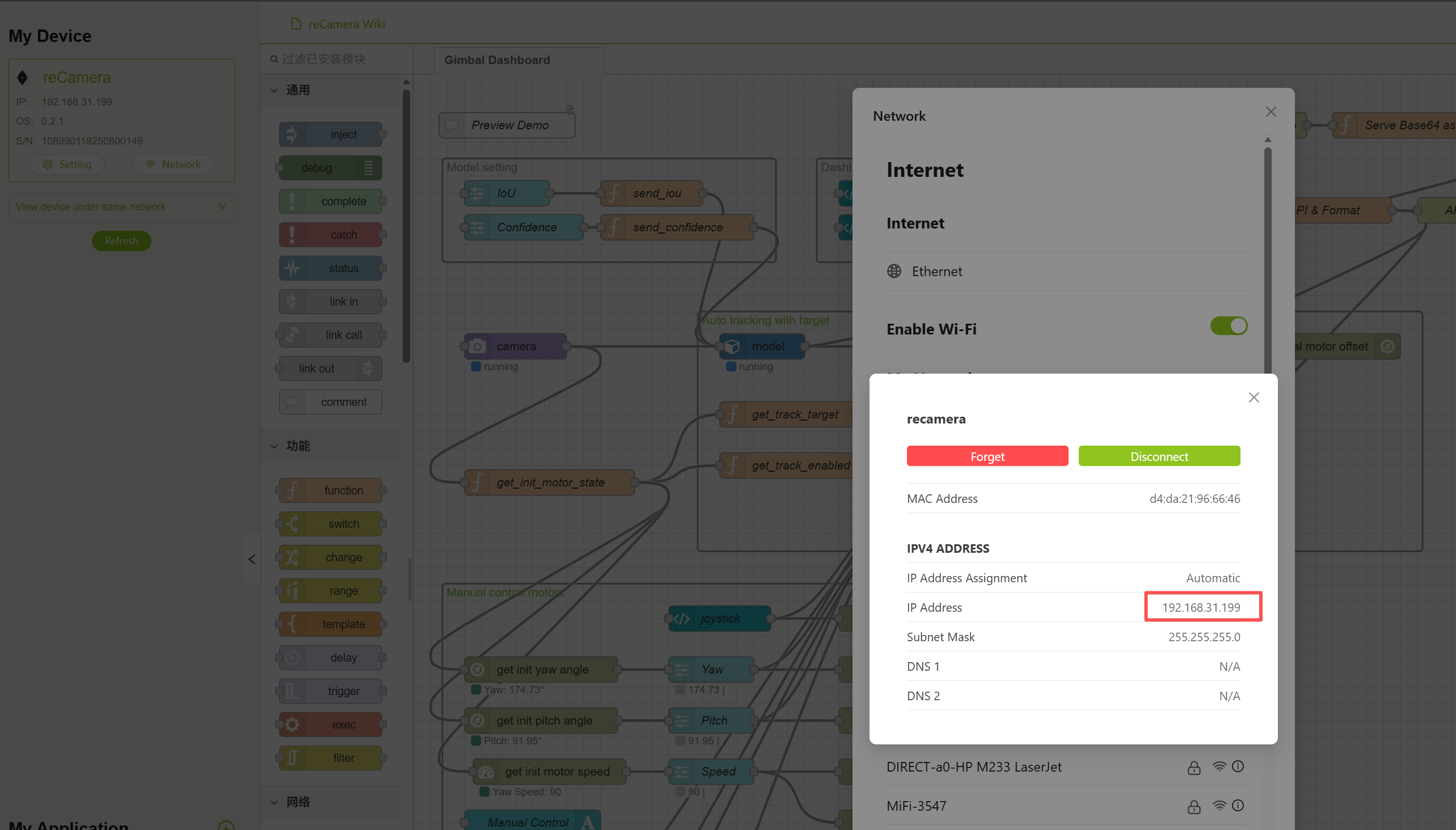 Make sure reCamera Gimbal and your computer are connected under the same WiFi