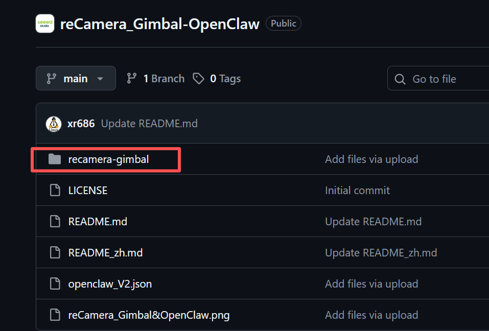 After downloading and decompressing, place the "recamera-gimbal" folder in the project in the "skills" folder created in step 2.1.