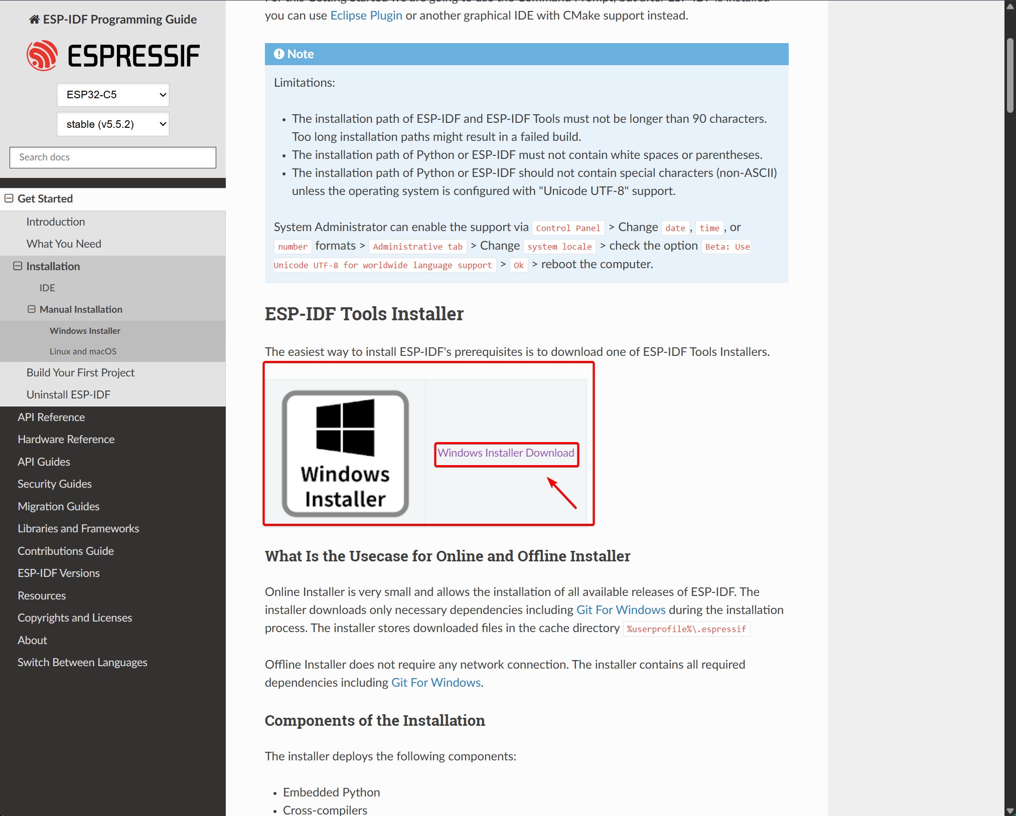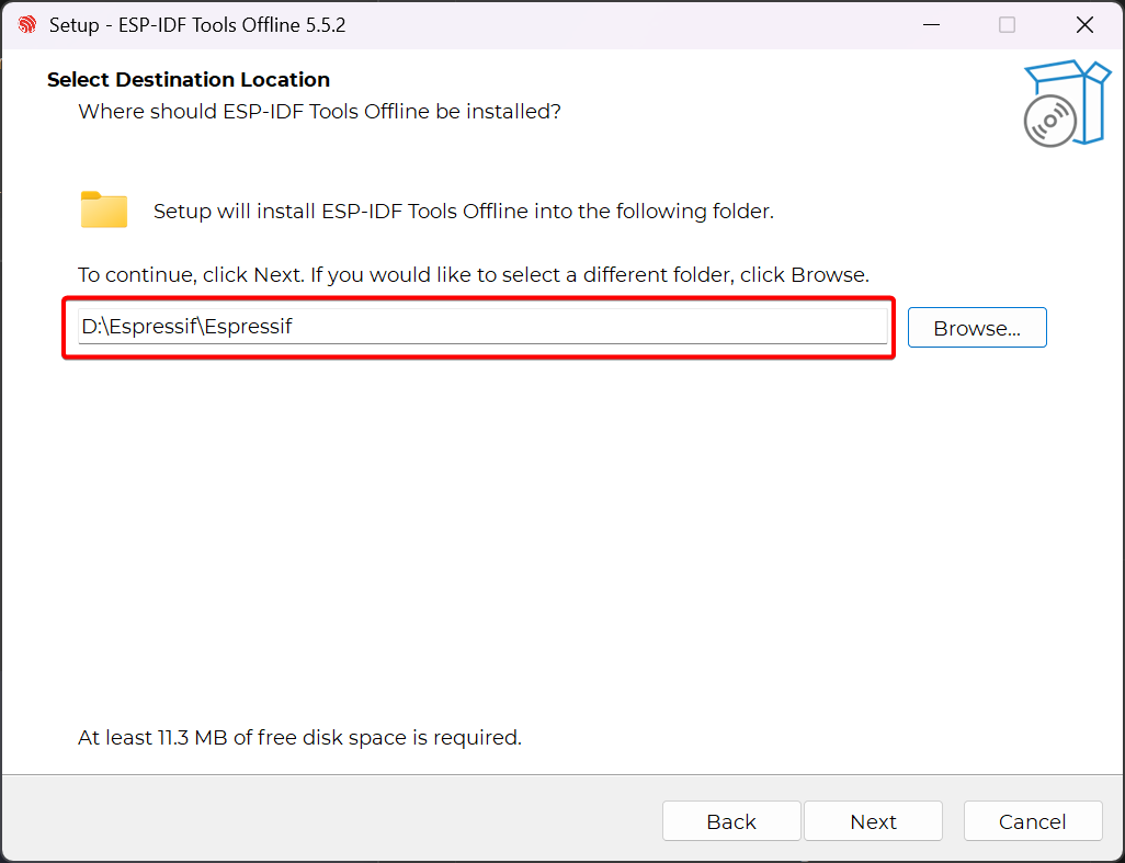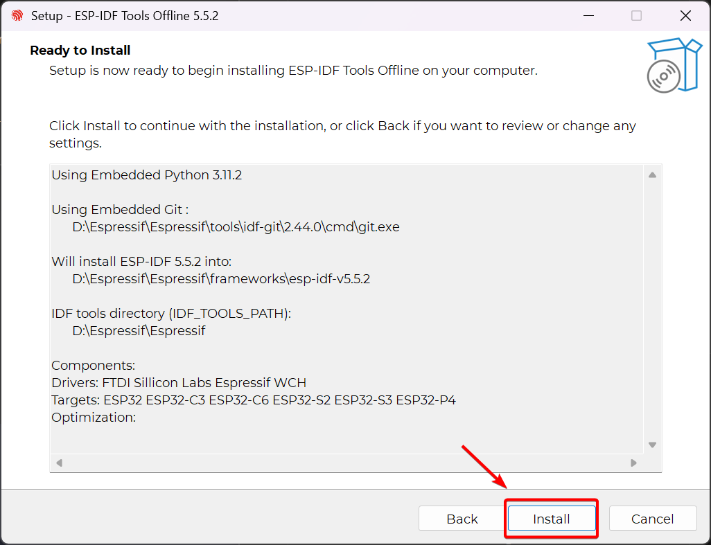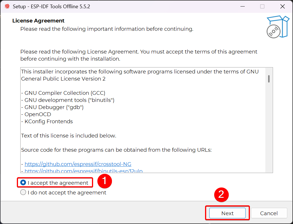 esp-idf-tools-setup-offline-5.5.2.exeand double-click it to start the installation. Select your preferred installation language