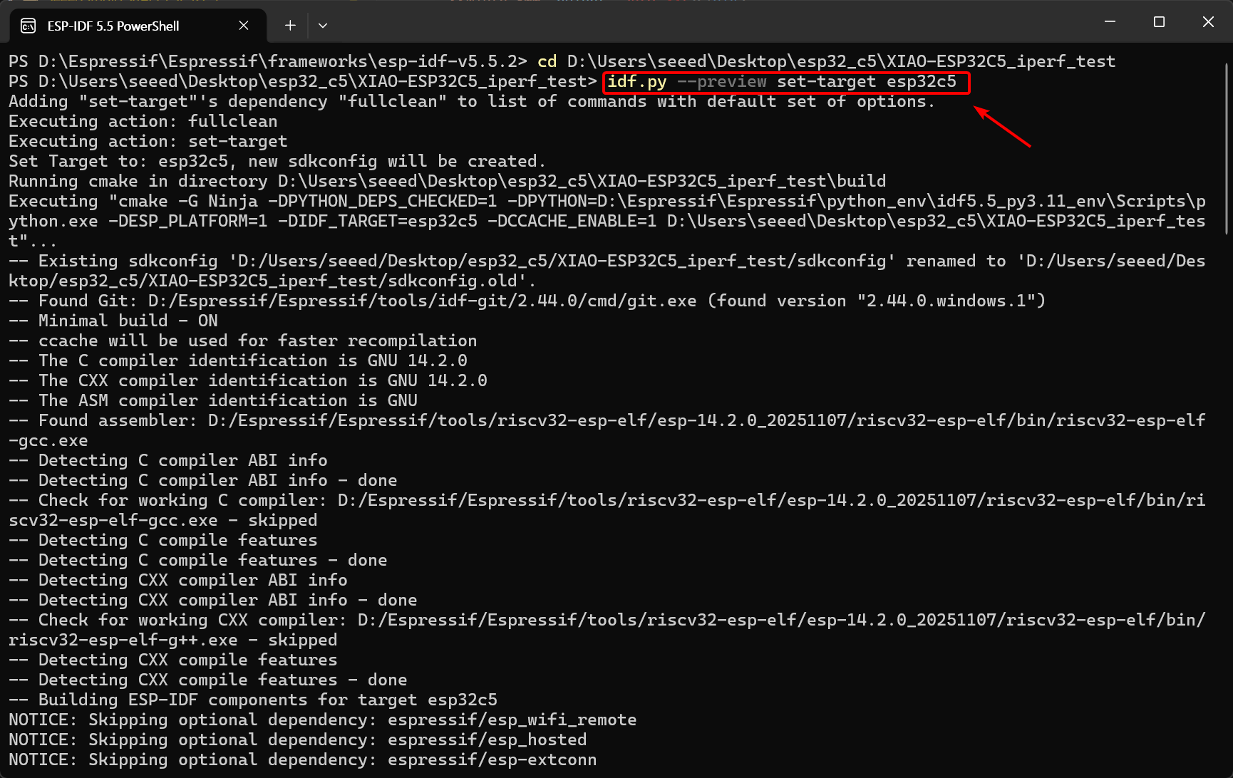 idf.py --preview set-target esp32c5