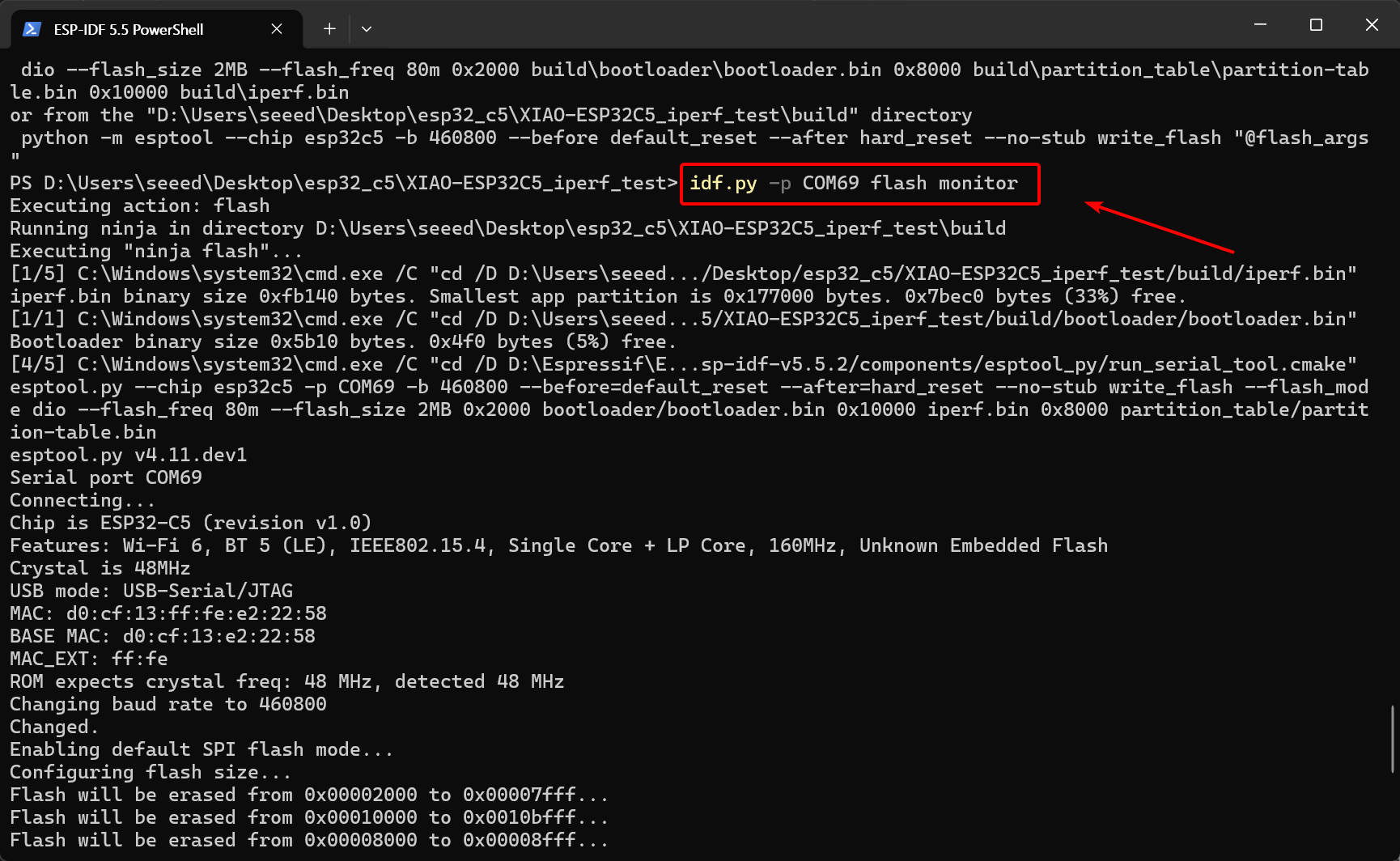 idf.py -p COM69 flash monitor
