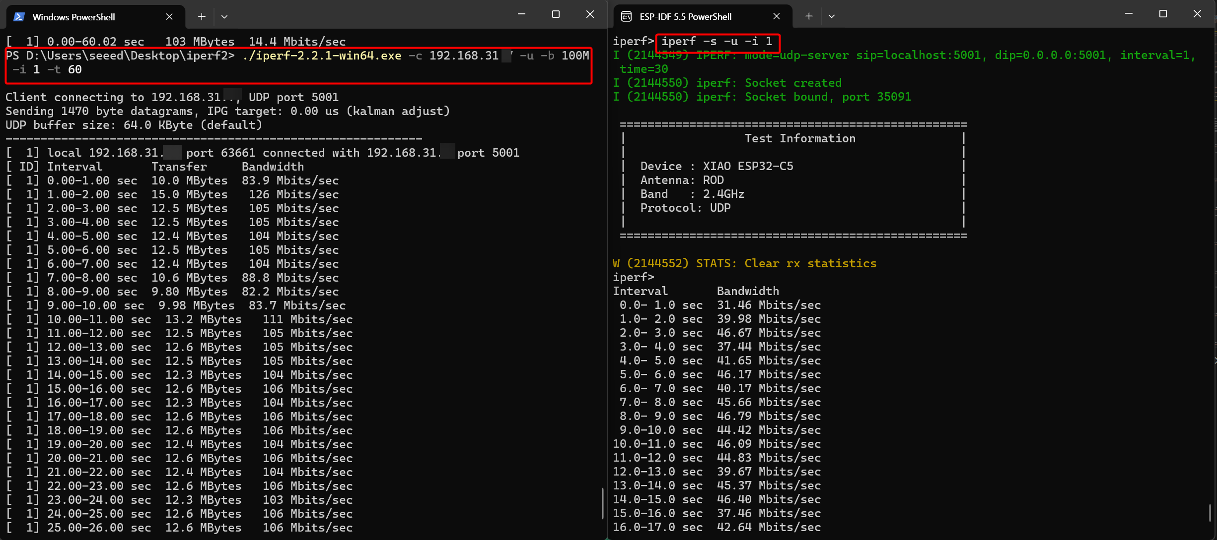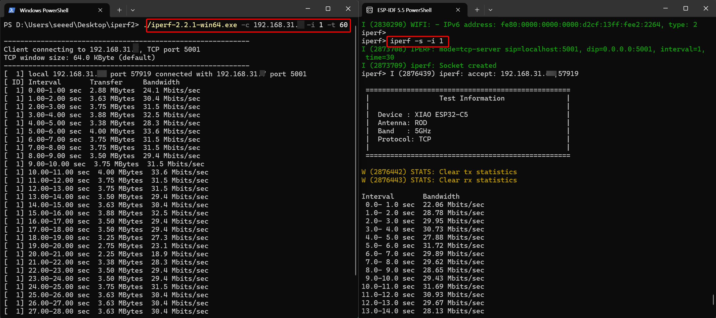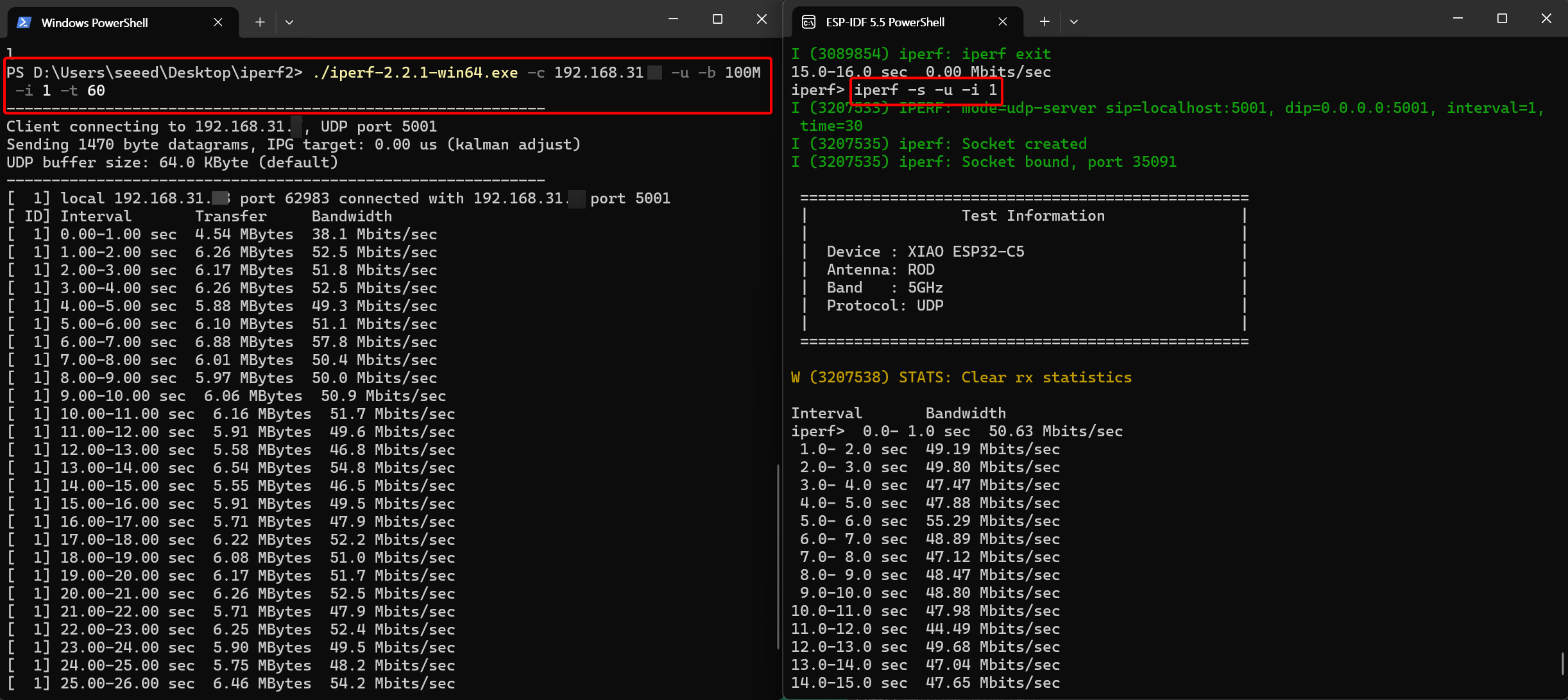 Seeed Studio XIAO ESP32-C5 Wi-Fi Throughput Testing Tool