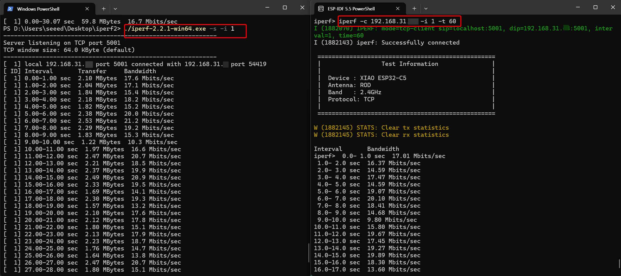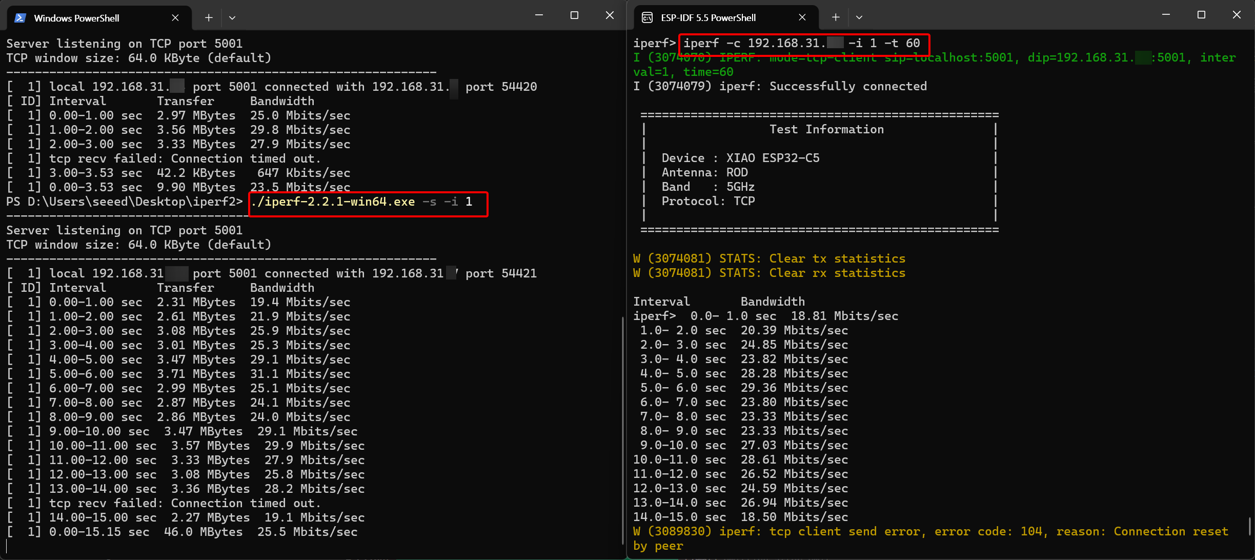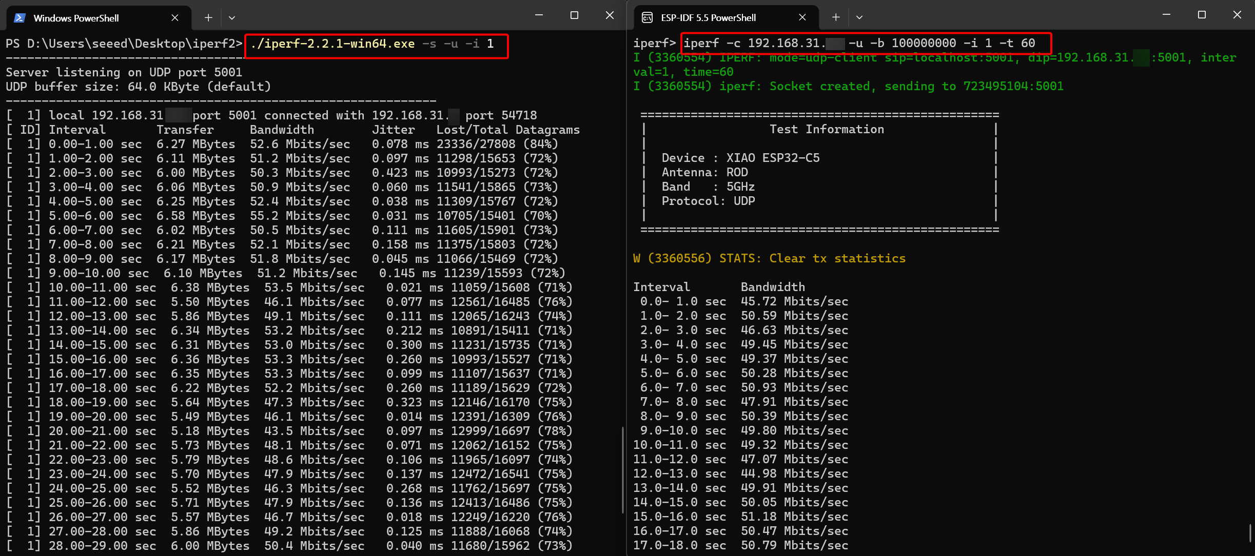 Seeed Studio XIAO ESP32-C5 Wi-Fi Throughput Testing Tool