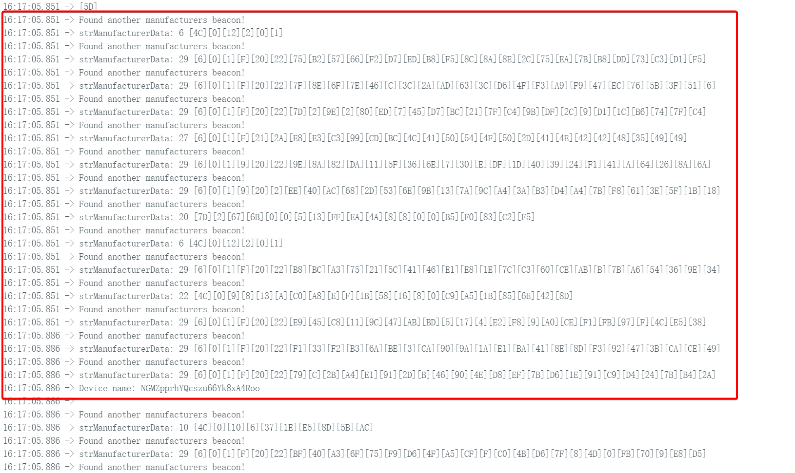 - Upload the code and open the Serial Monitor to observe. It also implements the Bluetooth scanning function, but with a faster scanning speed.