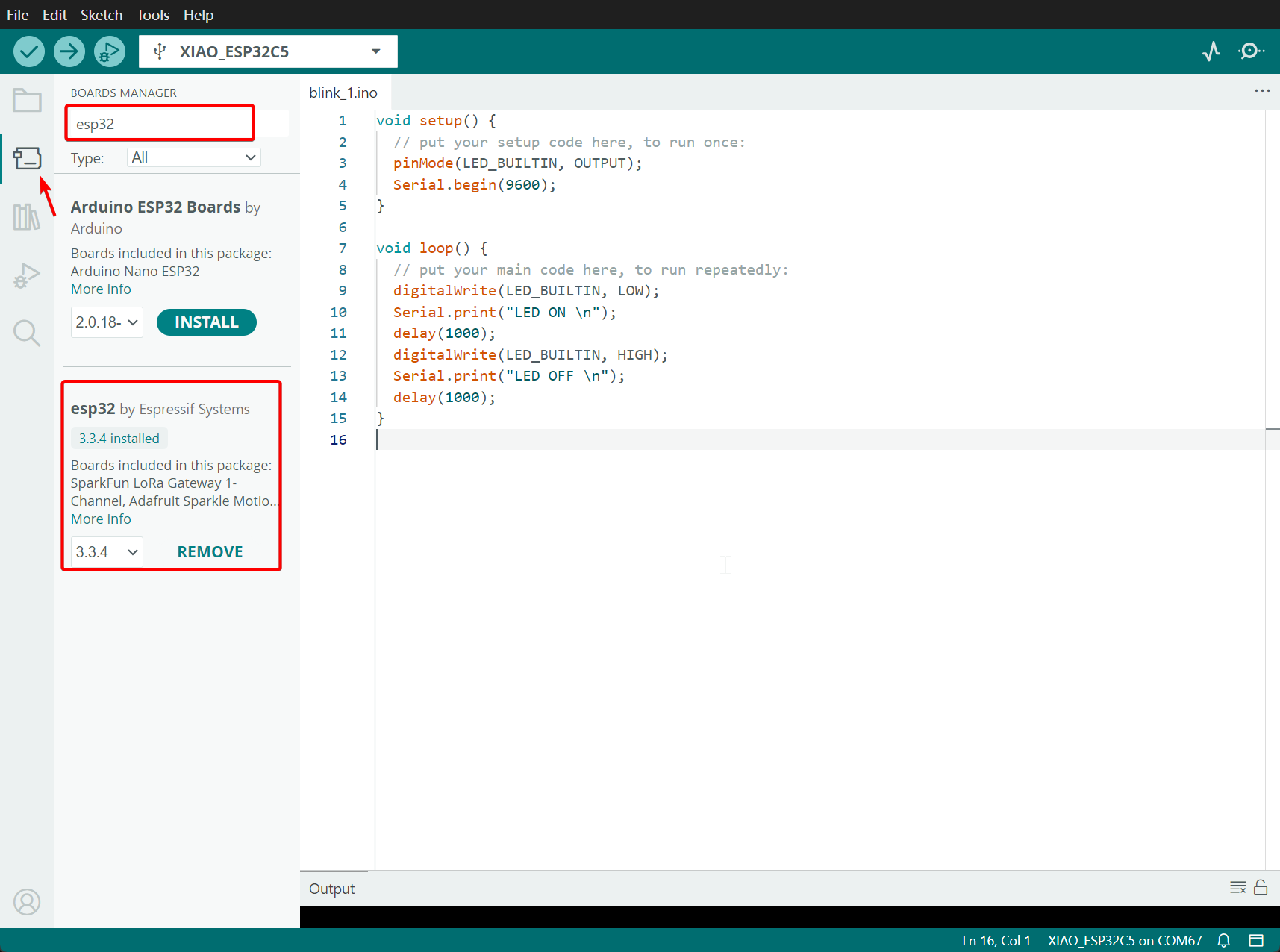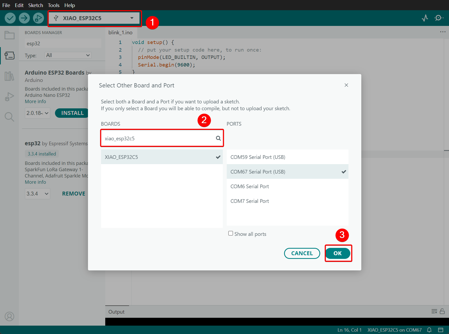 Step 3. Open BOARDS MANAGER -> Search esp32 -> Install version 3.3.4 or a higher version