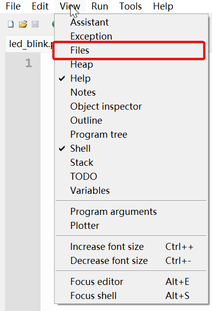 - Click File -> New in the upper left corner to create a new file, then press Ctrl + S to name it led_blink and save it to your computer.