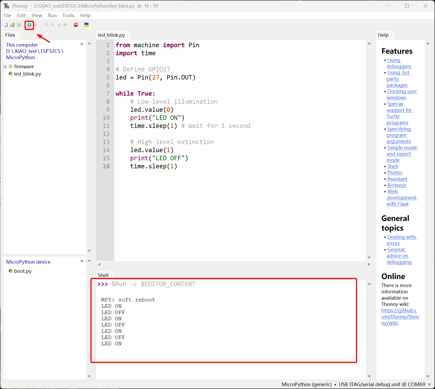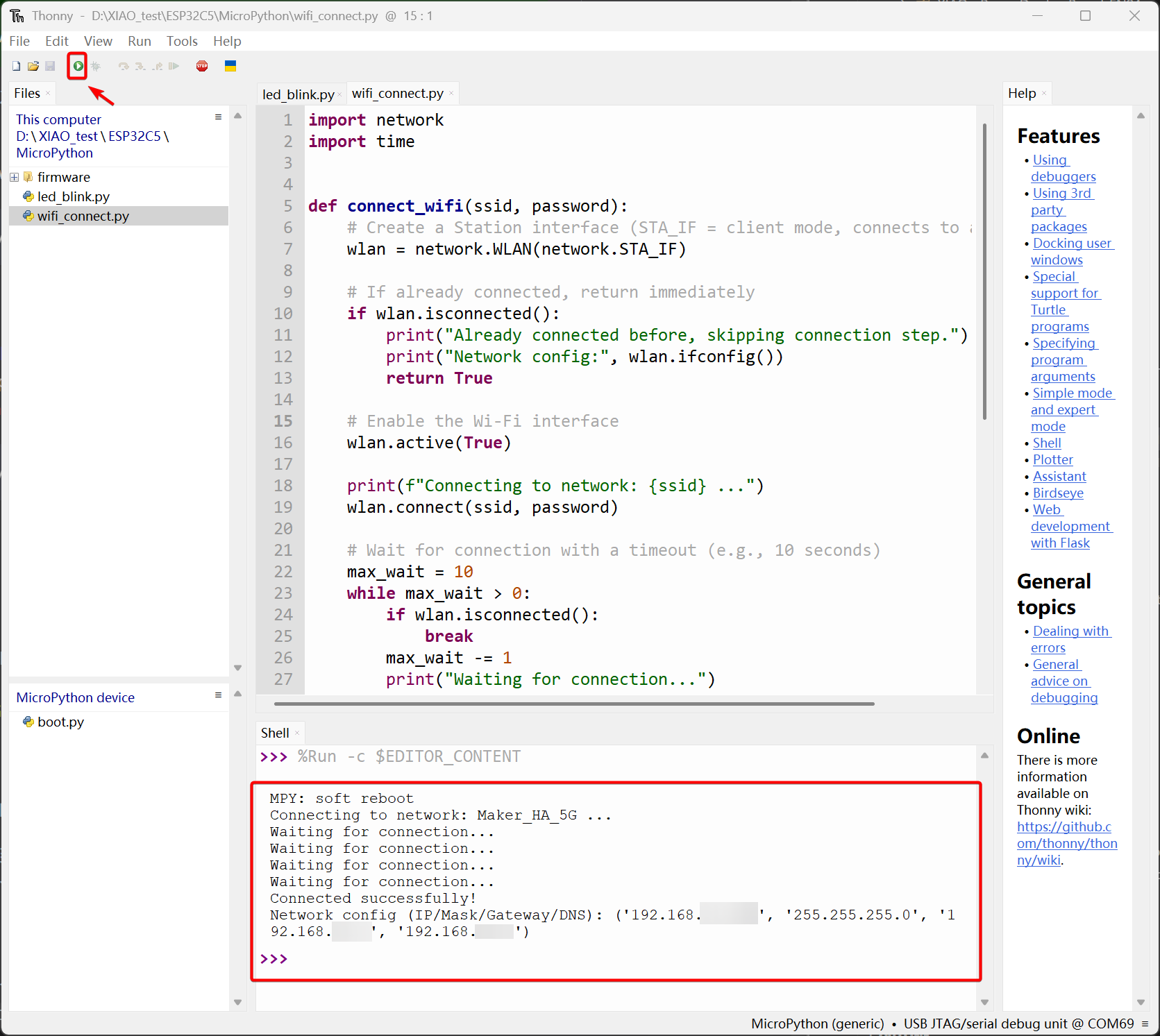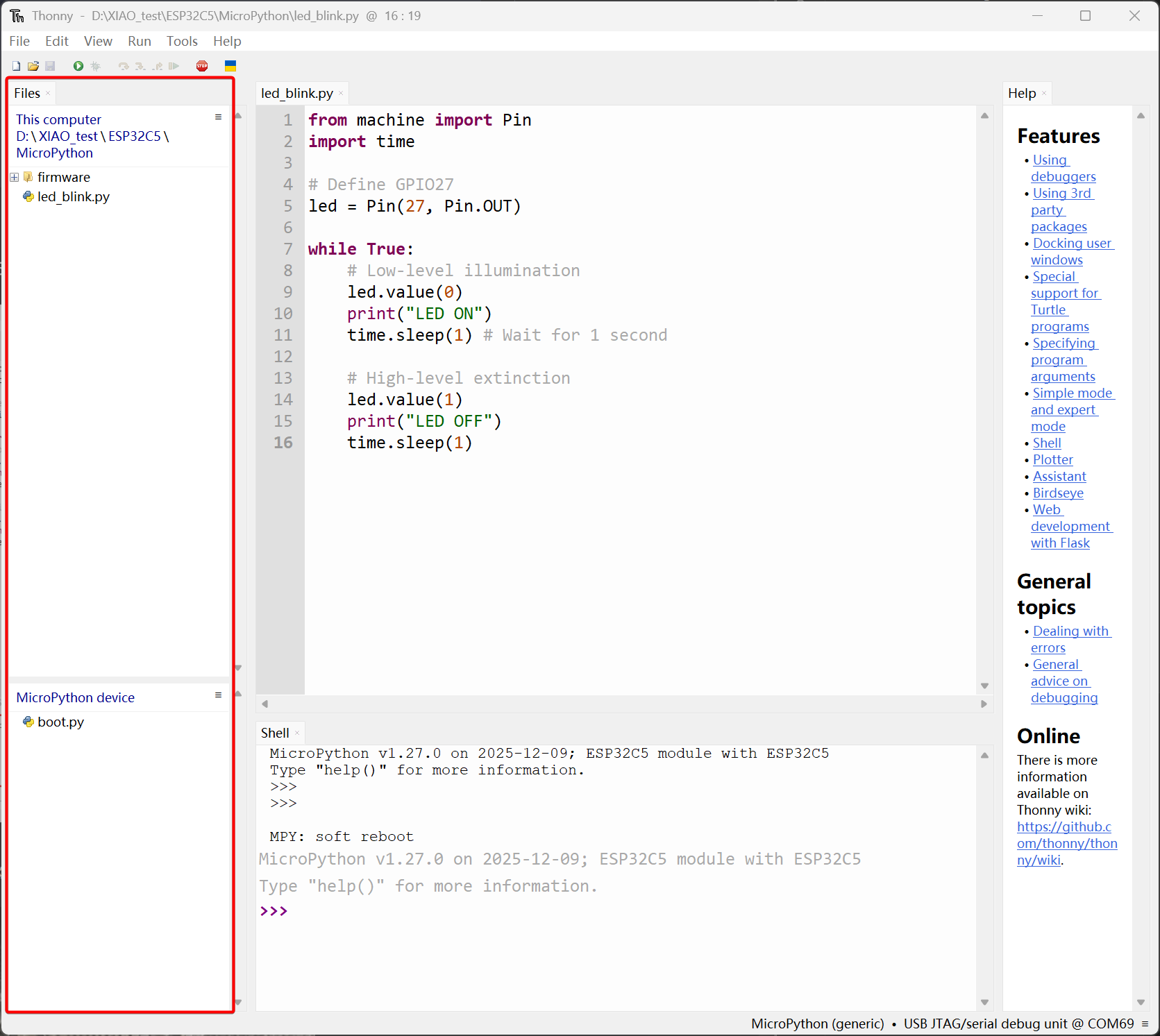 Here we will show you how to light up the L LED on the XIAO ESP32-C5 using MicroPython with Thonny IDE.