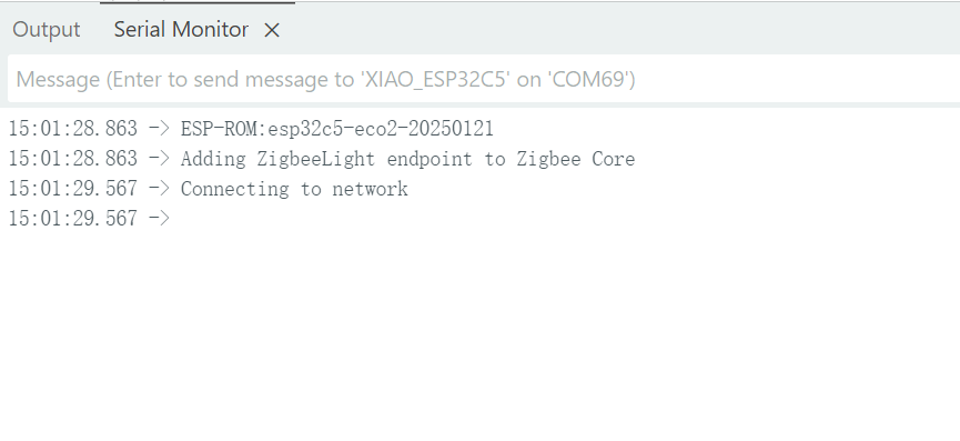 - When the XIAO ESP32-C5 end device successfully joins the Zigbee network, it will be displayed in the Serial Monitor.