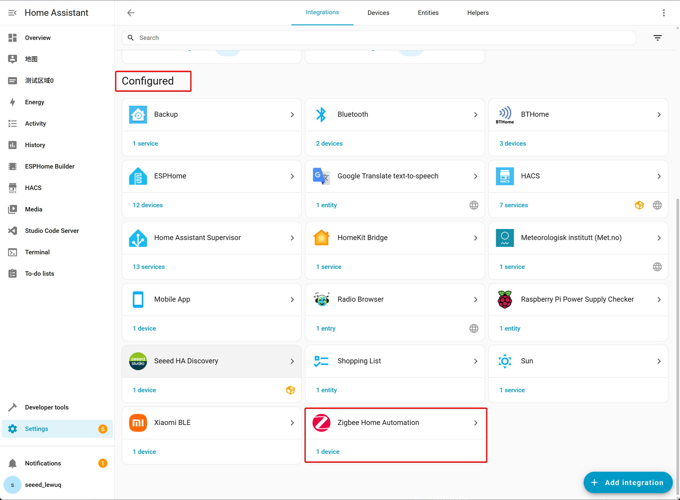 - Once successful, you will find the Zigbee device has been added under Configured.