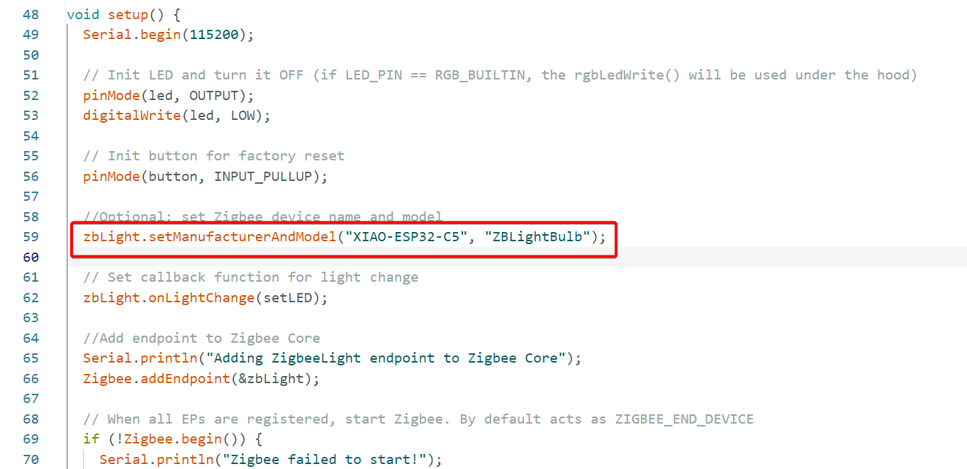 zbLight.setManufacturerAndModel("XIAO-ESP32-C5", "ZBLightBulb");