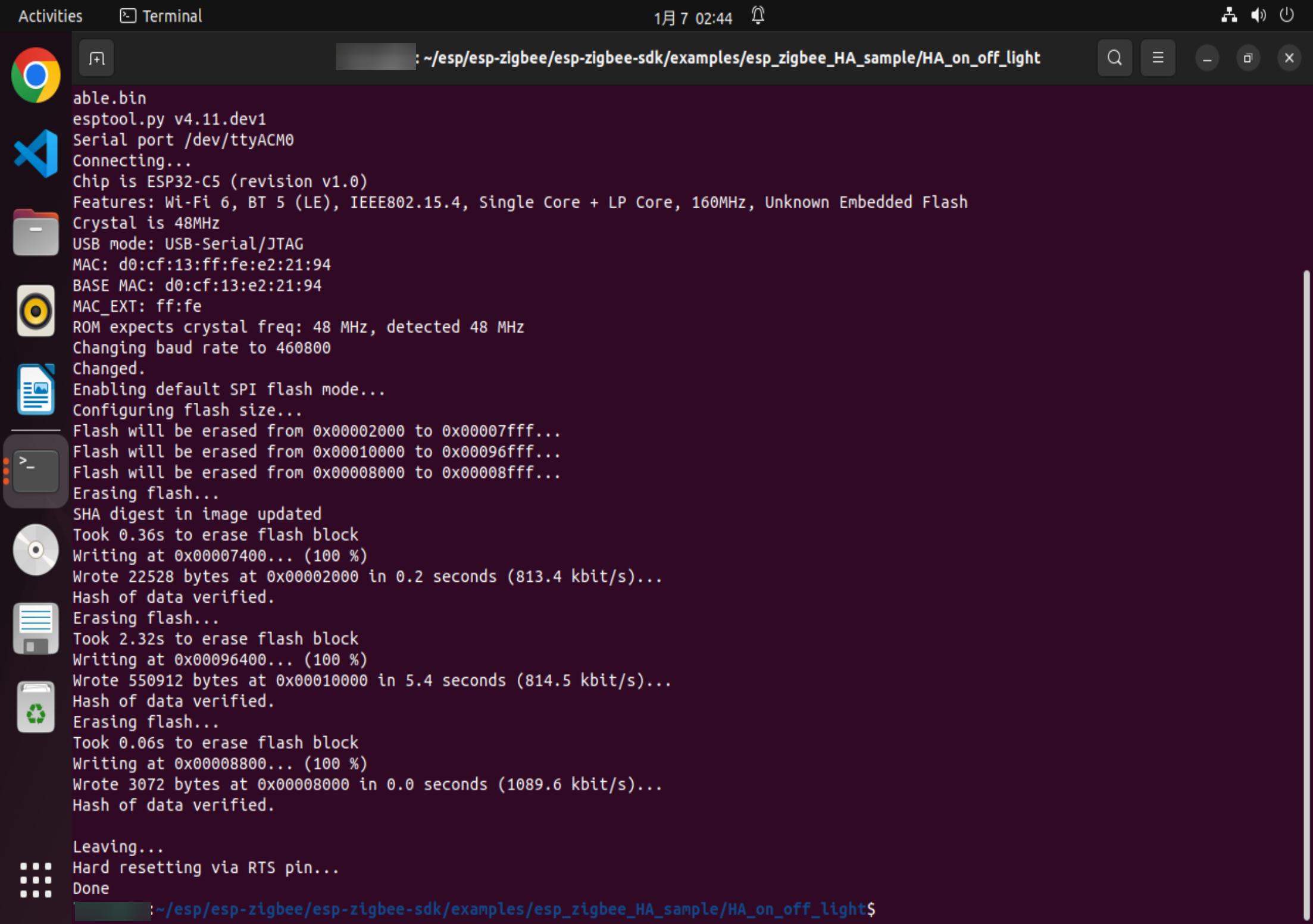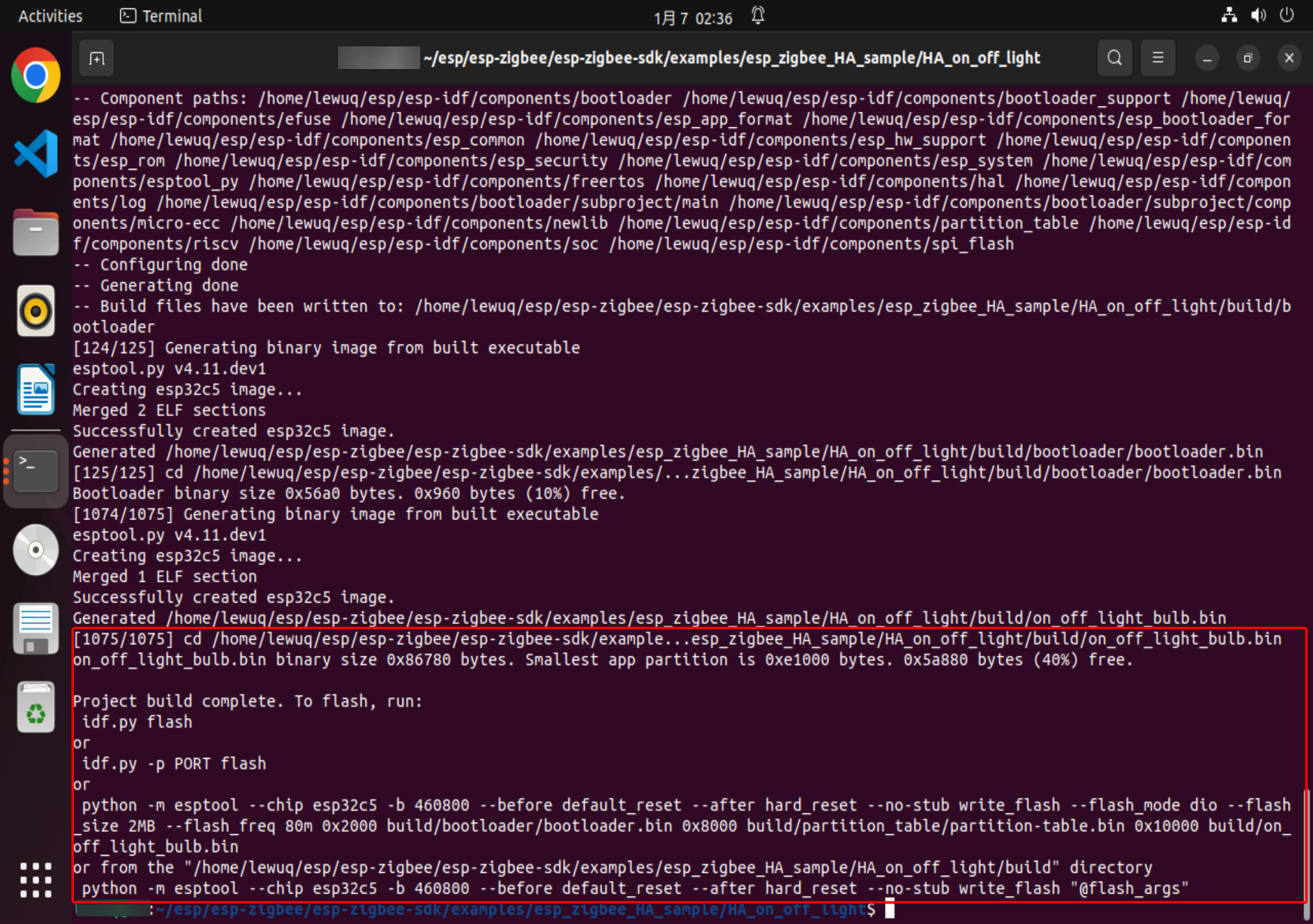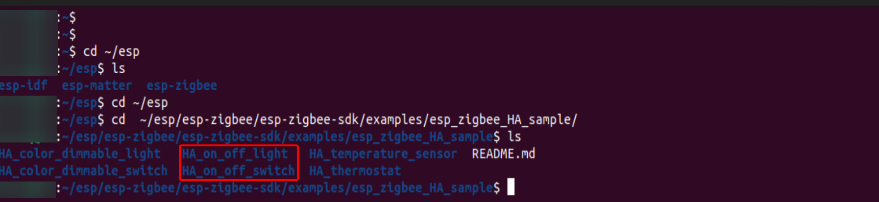 cd ~/esp/esp-zigbee-sdk/examples/esp_zigbee_HA_sample/HA_on_off_light/main
