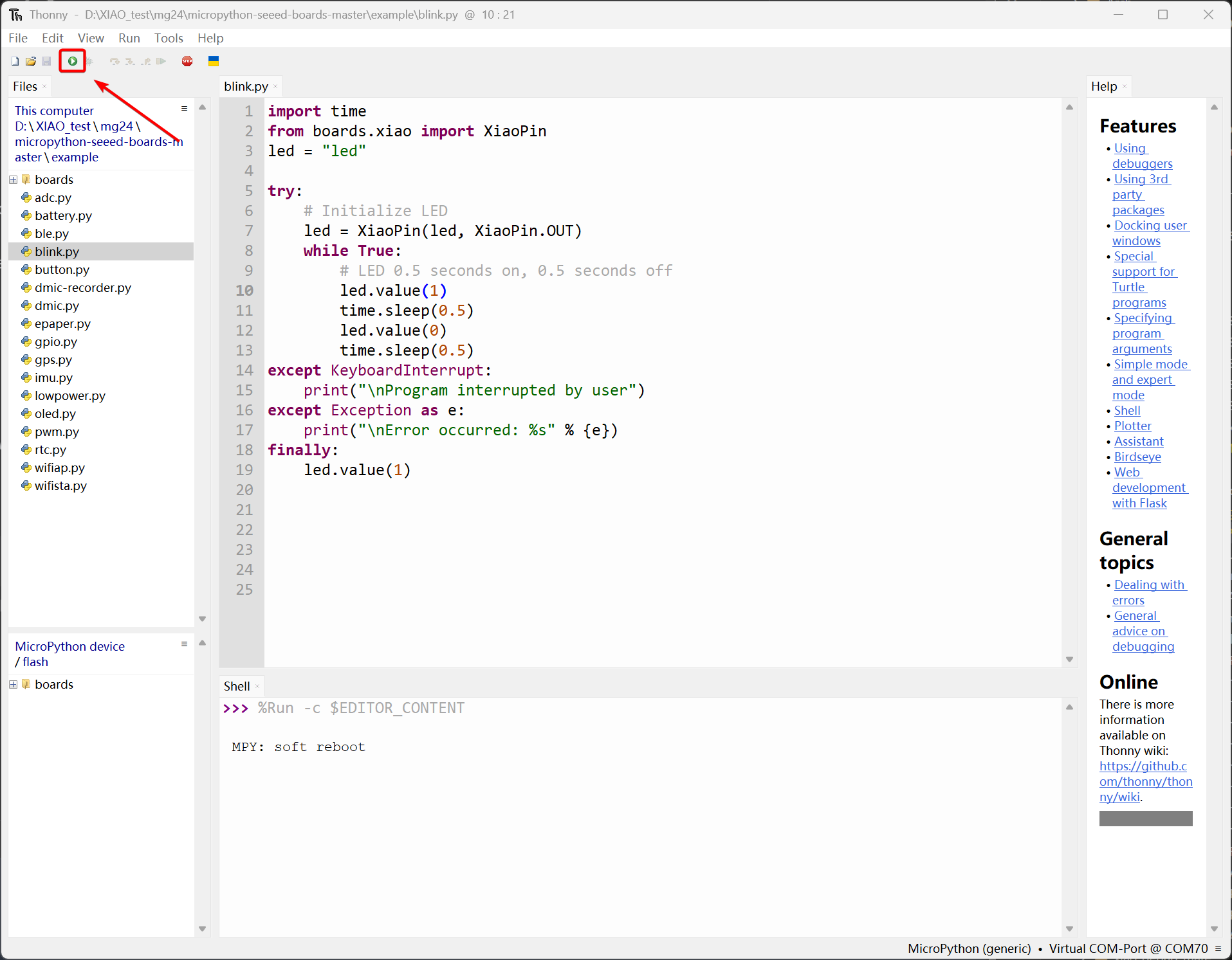 Here we will show you how to light up the USER LED on the XIAO MG24 using MicroPython with Thonny IDE.