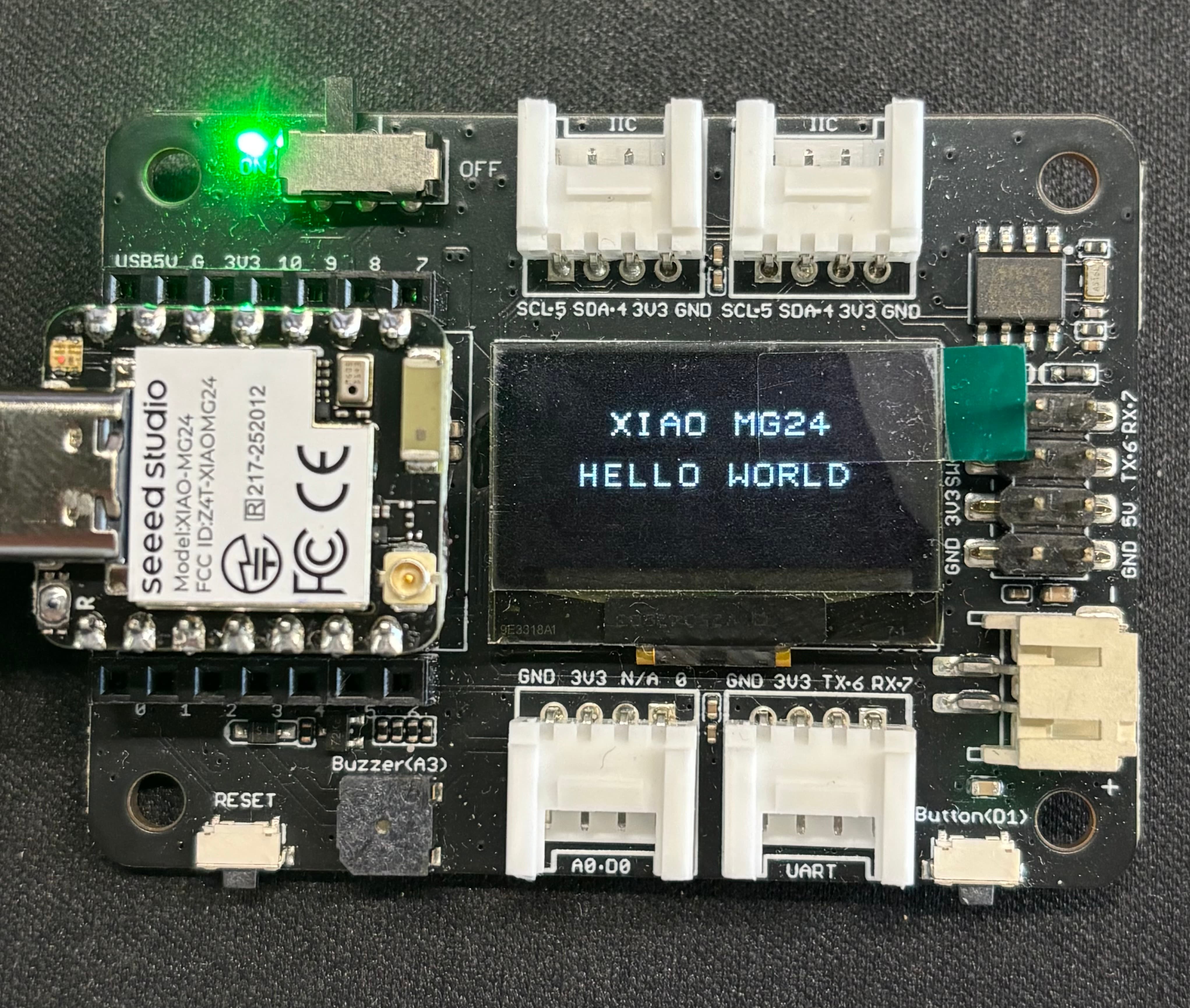 - Once the program starts running, it will display XIAO MG24 and HELLO WORLD on the screen.