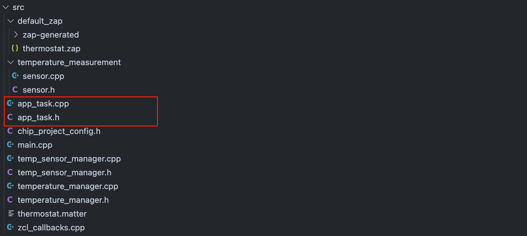 - ZAP configuration file that defines the cluster and attribute setup for the Matter thermostat application.