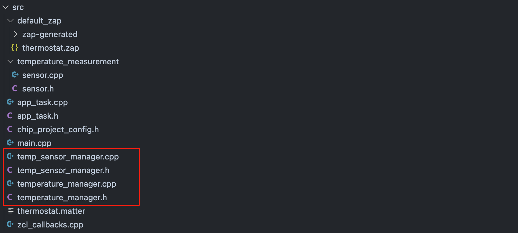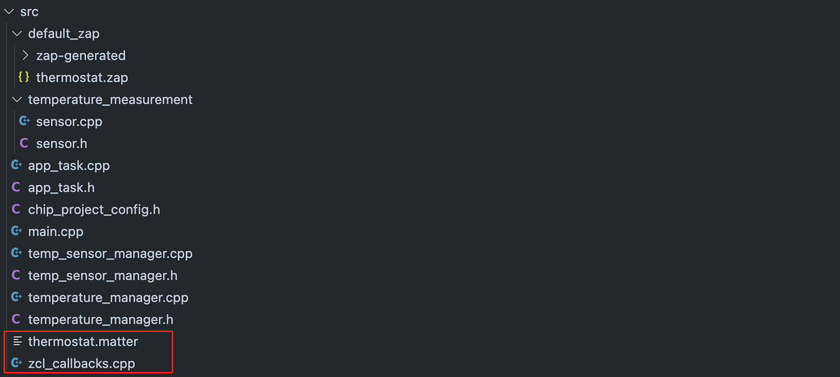 - Matter device definition file describing clusters, attributes, and endpoints for the thermostat.