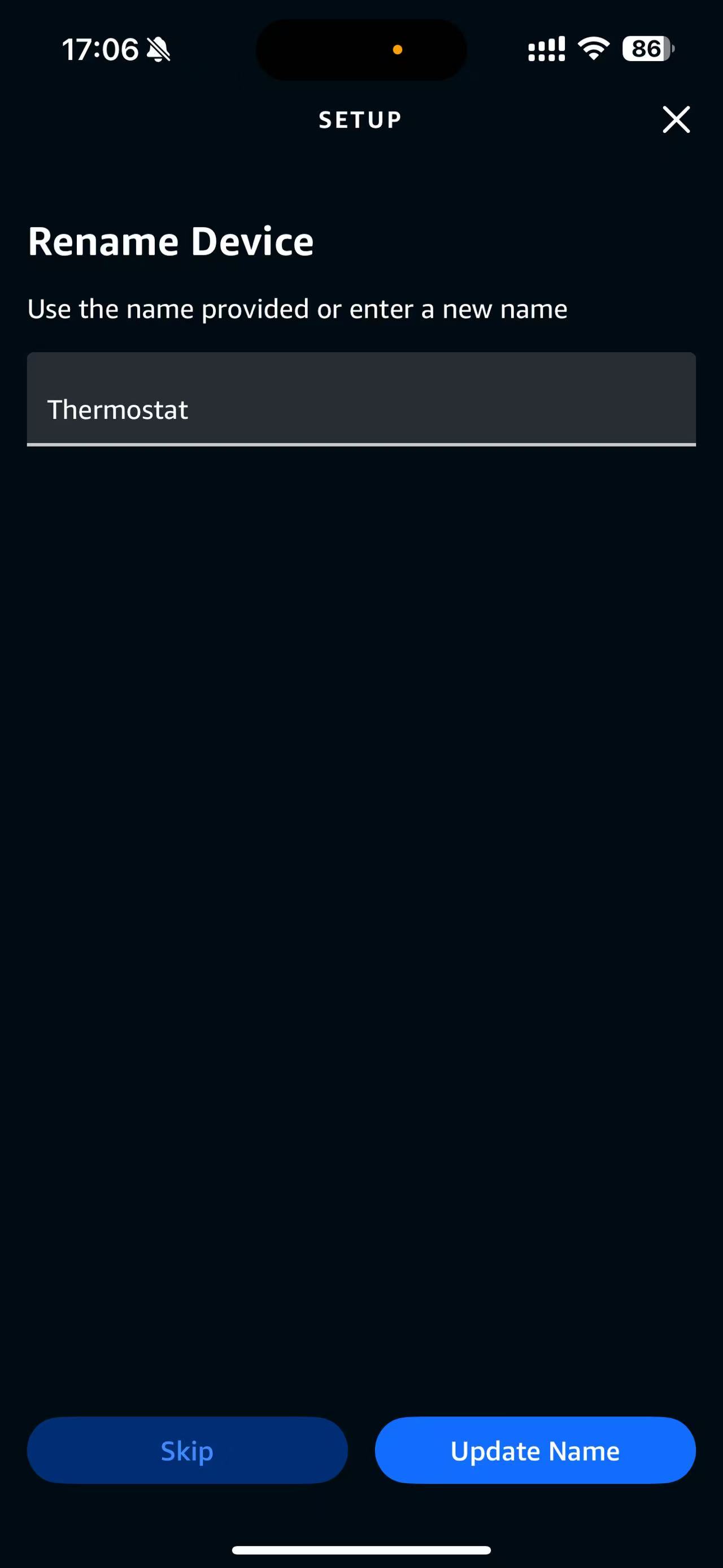 - Rename Device:After setup, give your device a name, such as “Thermostat”, then tap Update Name.