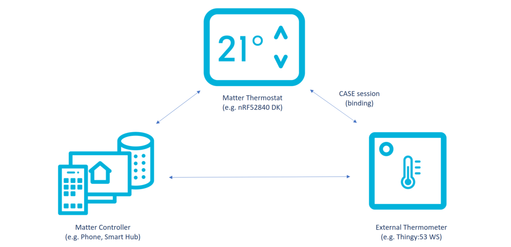 Real temperature sensor mode - In this mode, the thermostat sample is bound to a remote Matter temperature sensor, which provides real temperature measurements. This mode requires External sensor integration.
